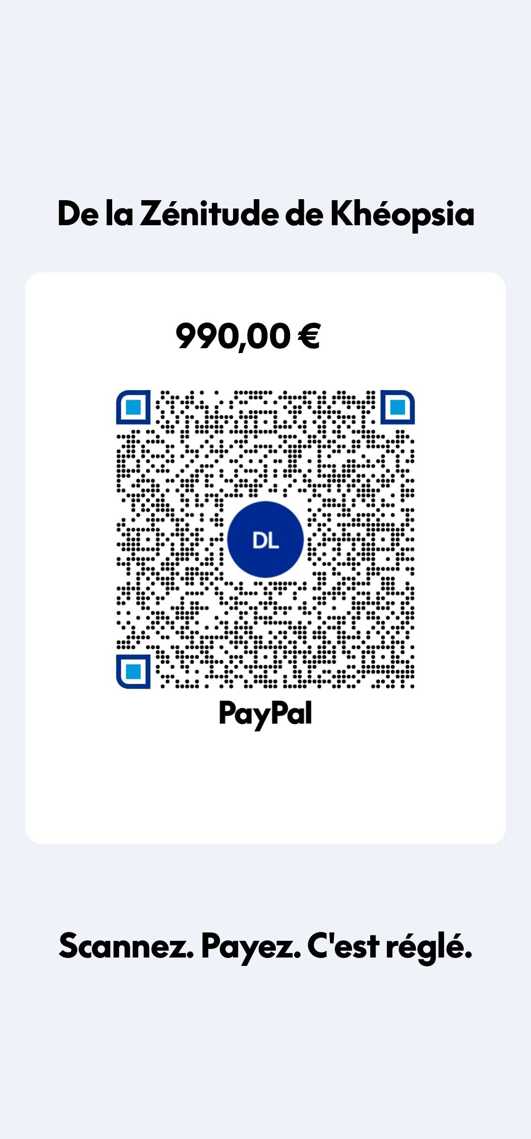| Paiement | Chèque, espèces ou virement bancaire, CB,...(QRcode, lien ...à la demande) PayPal et possibilités de 4x sans frais PayPal |